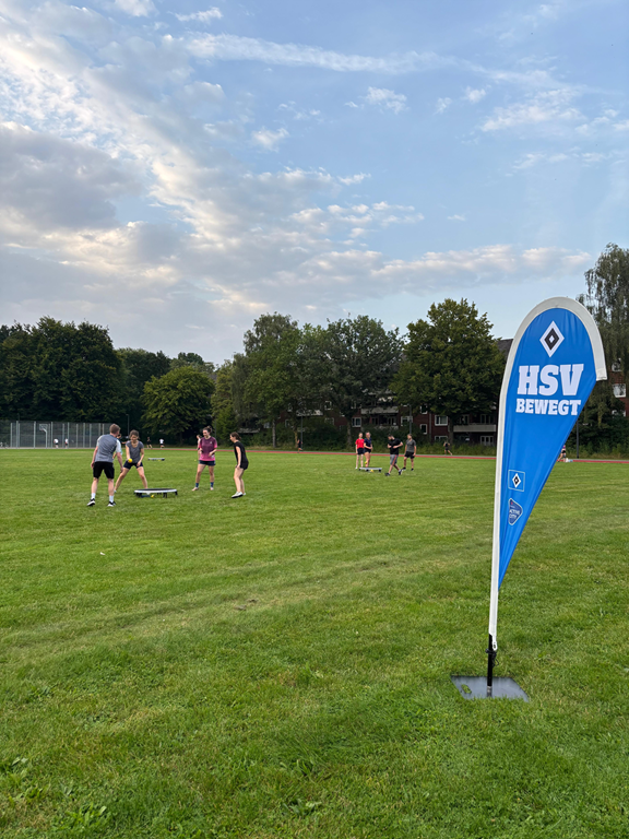Unter dem Motto "HSV bewegt" bietet der HSV bereits seit dem 14. Juli ein kostenloses und offenes Sportprogramm für alle Altersgruppen an. Ziel des Projekts ist es, Menschen im Stadtteil durch vielfältige und inklusive Bewegungsangebote zusammenzubringen und für Sport zu begeistern. Neben Sport für Kinder-Angeboten und Lauf- und Fitnesskursen stehen auch vereinsunabhängige Angebote wie Ultimate Frisbee, Slackline oder Roundnet auf dem Programm. Das Angebot richtet sich an alle Alters- und Leistungsklassen und erfordert keine Anmeldung. Im Vordergrund stehen der gemeinsame Spaß an Bewegung und das Miteinander im Stadtteil.